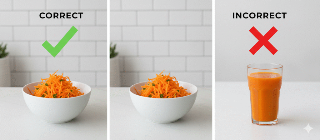When you juice a carrot, you remove the very thing that makes the “trick” work: the fiber.
