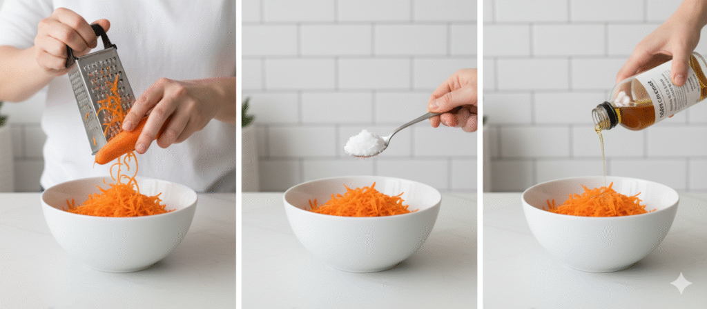 Second, it is recommended to shred the carrot lengthwise into long ribbons. This increases the surface area of the fiber.